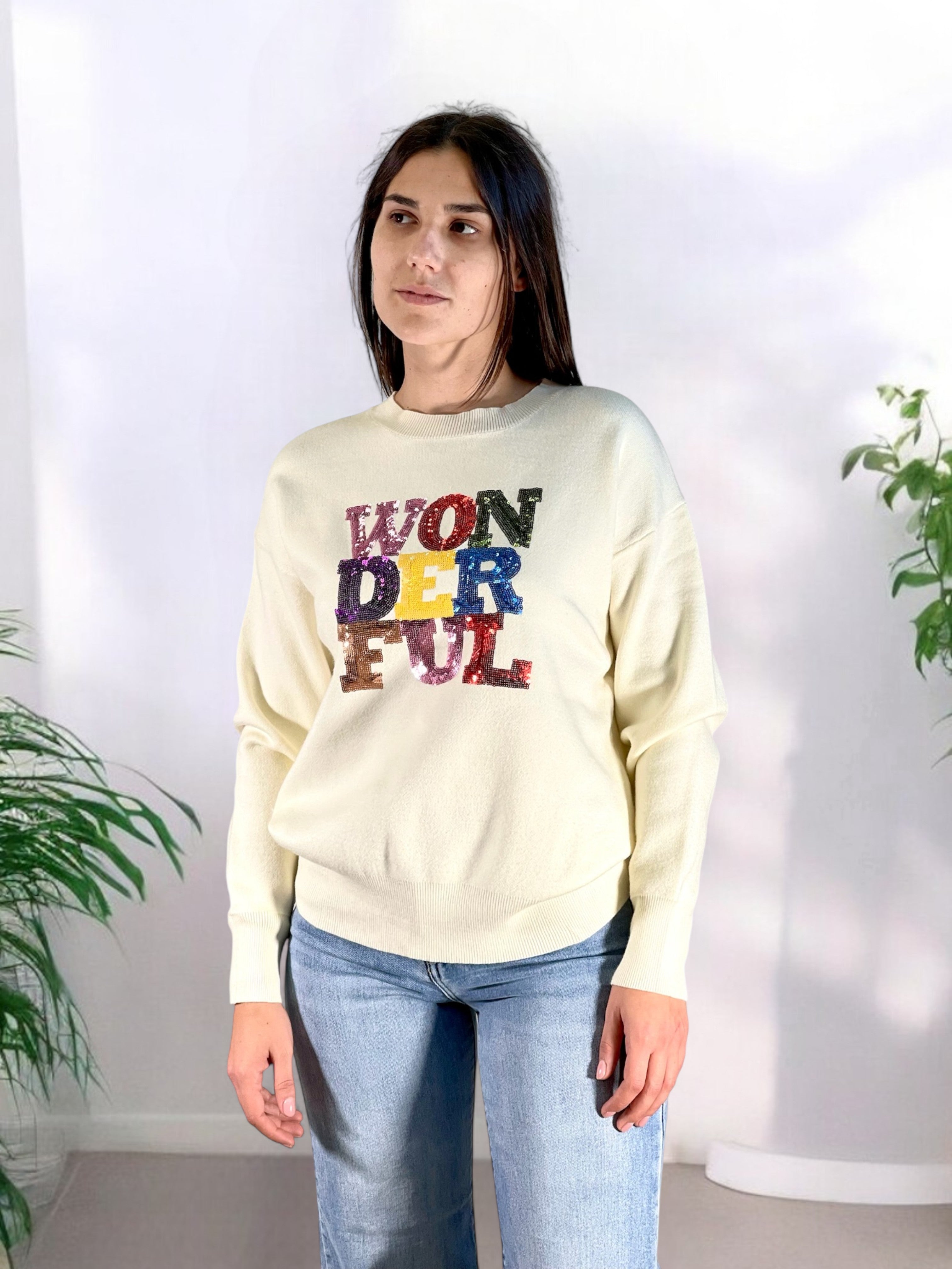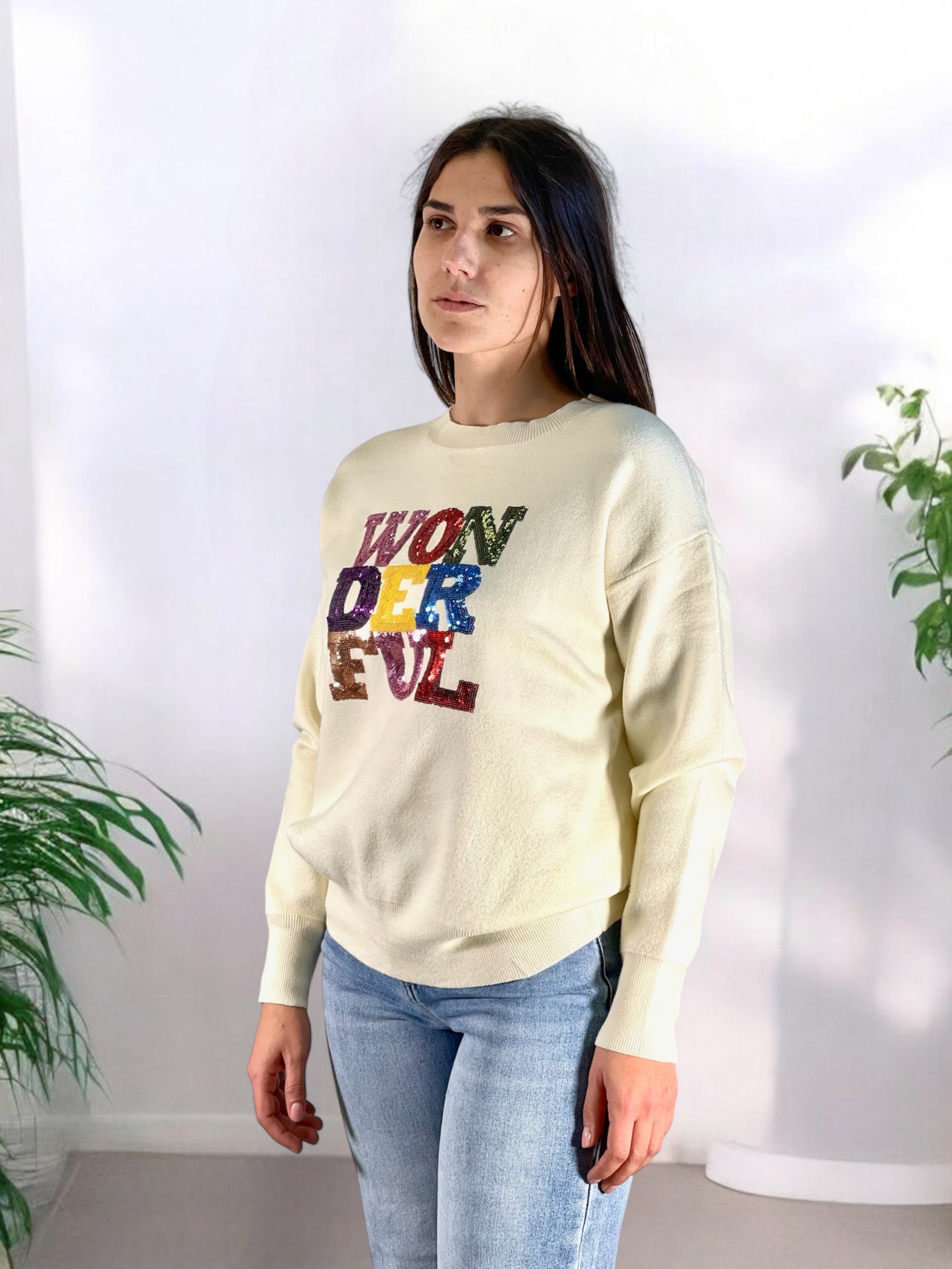 Maglione girocollo scritta paiette HELGA